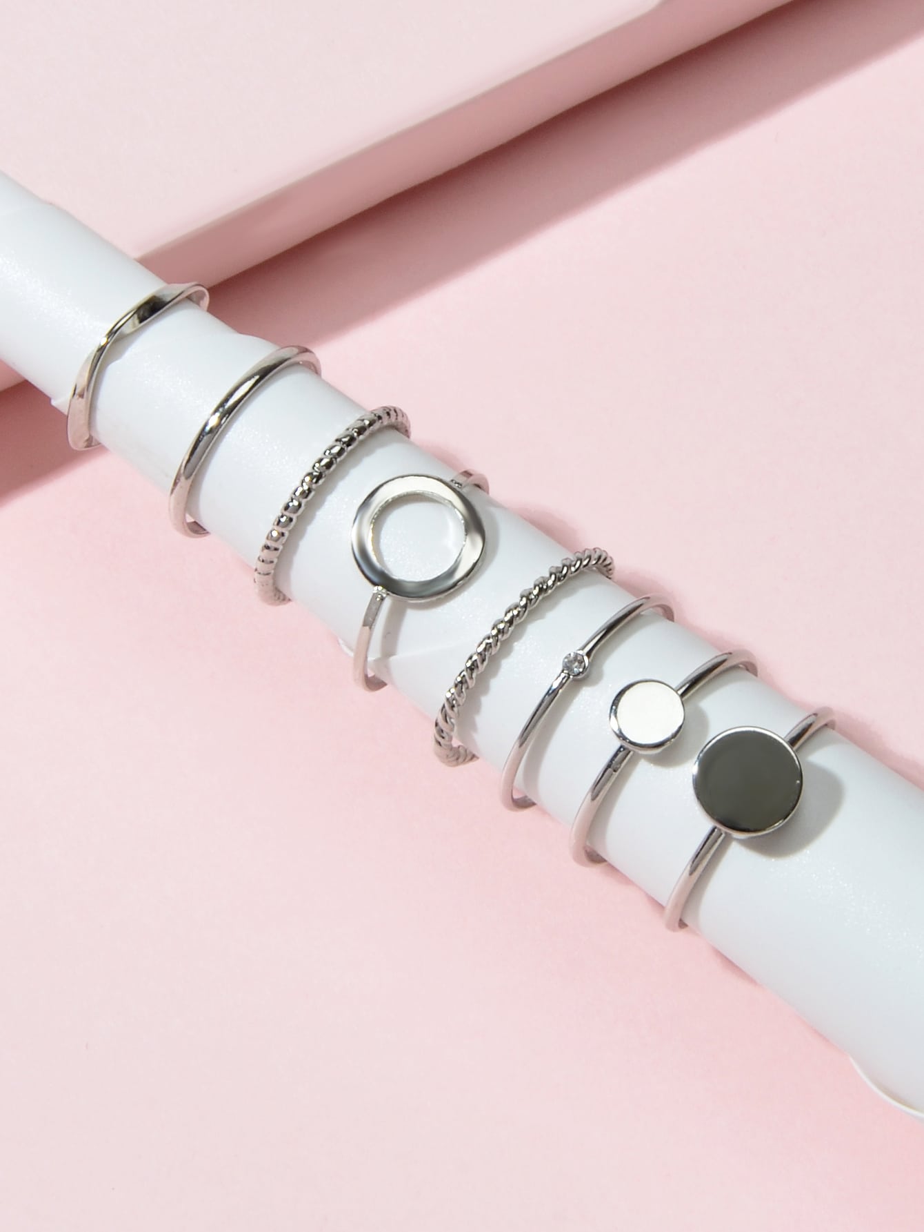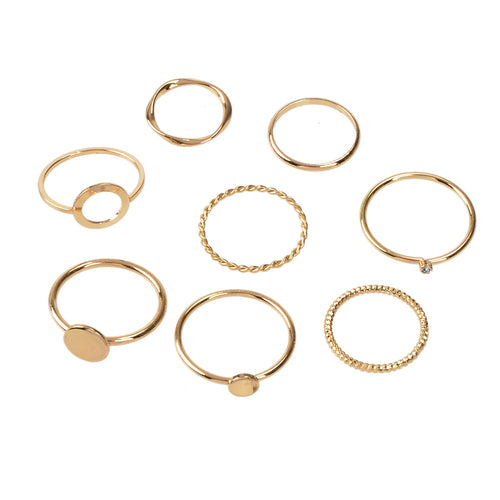 8 pcs Simple Geometric Rhinestone Disc Knuckle Multiple Finger Rings