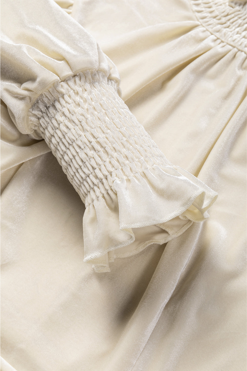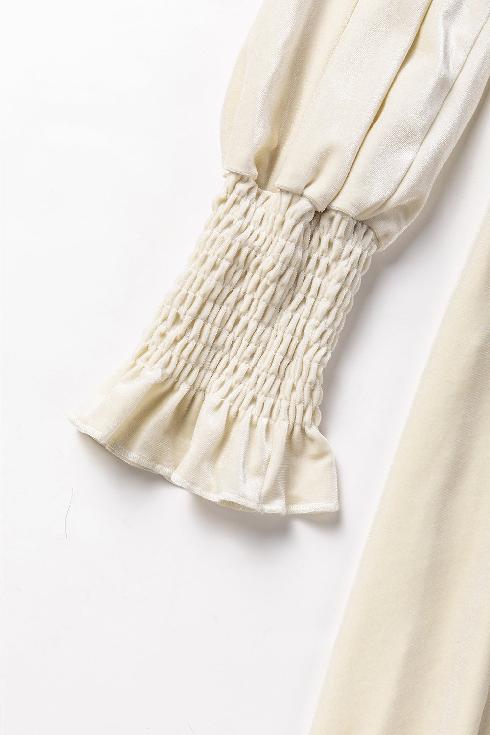 Apricot Shirred Collar Bubble Sleeve Mini Dress
